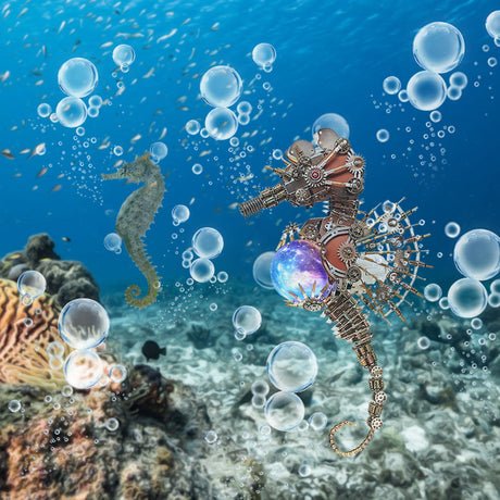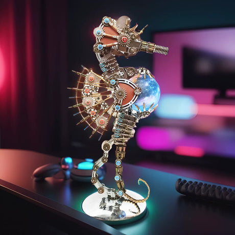 2100PCS Steampunk Seahorse Puzzle 3D DIY Model Kit with Planet Lights