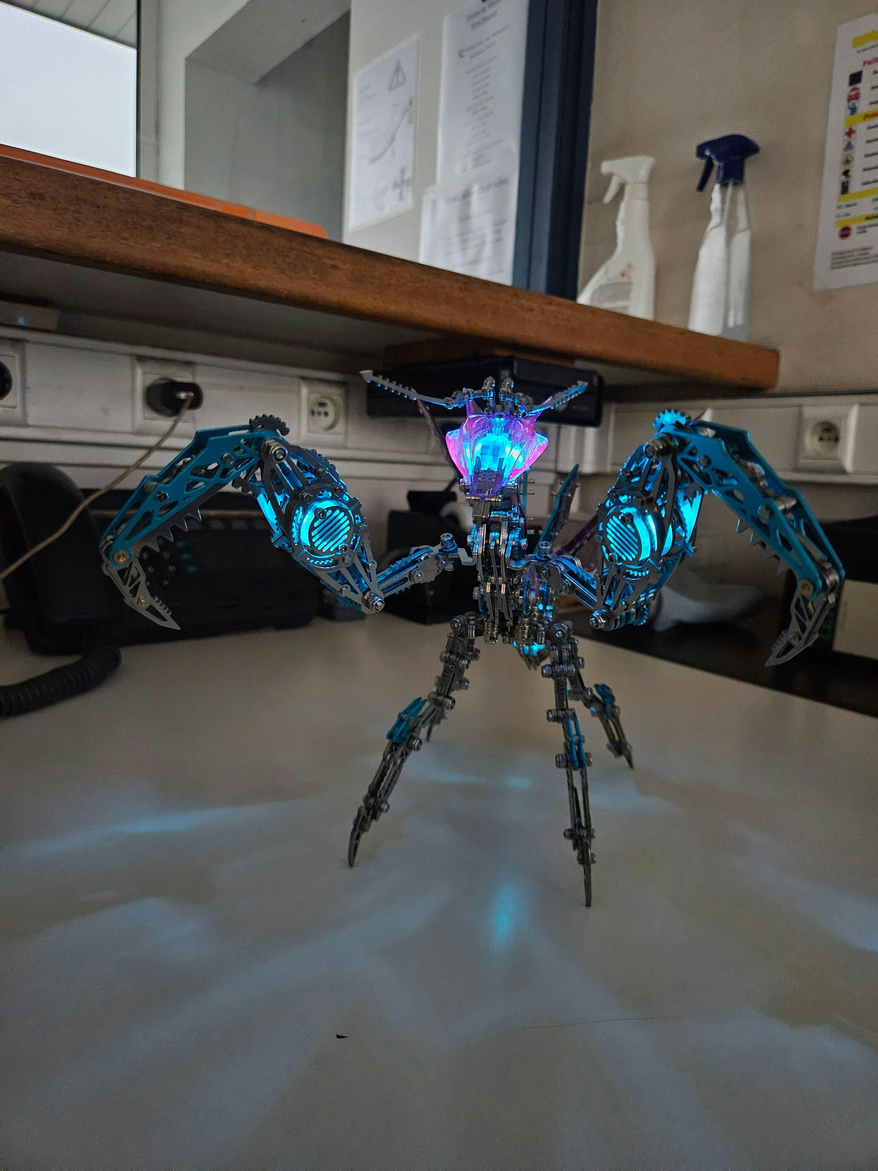 - A marvel of engineering and the beauty of biomechanics, this metallic mechanical mantis model combines mechanics with one of nature's most iconic predators - the mantis.