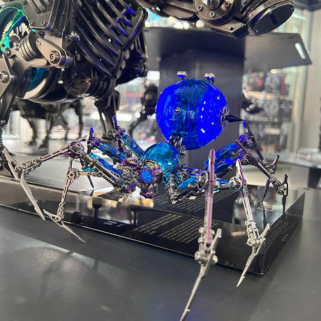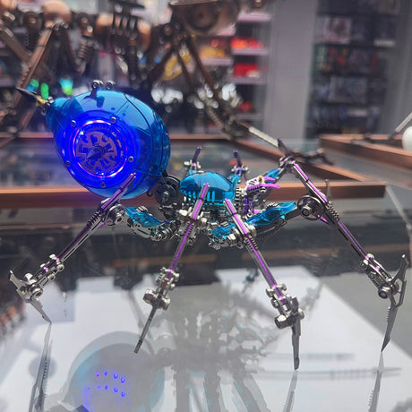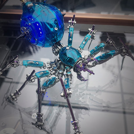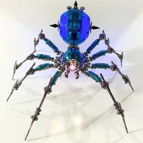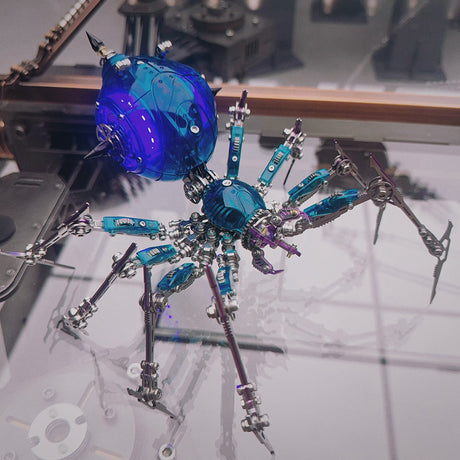 Cyberpunk Metal Mechanical Mecha Blue Battle Spider Model Building Kit for Adults
