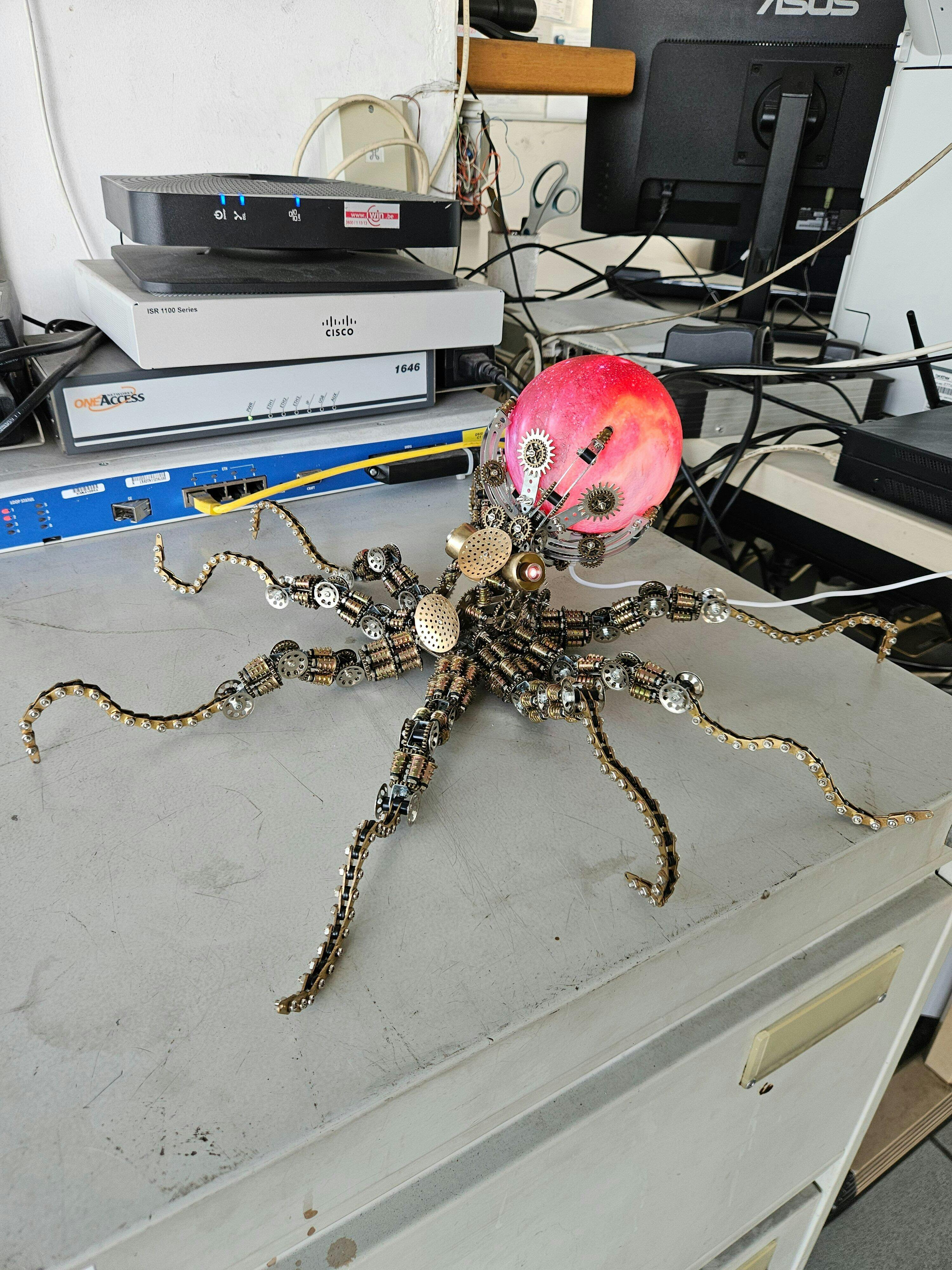 - Recyclable Metal Material: The product is made of premium-quality metal material (stainless steel + iron + copper) and recyclable components, such as recyclable gears, rivets, copper rings, tubes and machine parts, as well as decorated with metal & electrical components (such as bolts, nuts, etc.). Form your own wonderful mechanical octopus model through the delicate combinations.