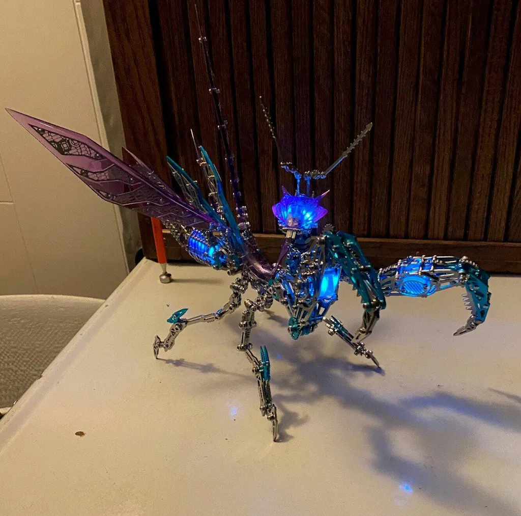 With its wide wingspan, layered metal textures, and glowing LED eyes, this model commands attention from every angle.