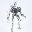 Legs and Feet: The lower limbs are constructed with multiple articulation points, allowing for advanced maneuverability. The feet are designed with wide pads and grip details, indicating stability and adaptability to various surfaces.