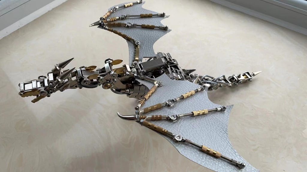 Kit de modelo de rompecabezas de bricolaje de metal mecánico de dragón con mosca con base - Alas coloridas está agotado y se enviará tan pronto como vuelva a estar disponible.